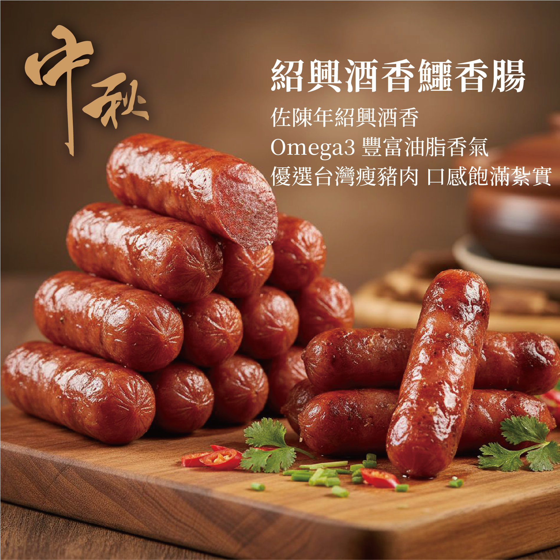 # 紹興酒香鱷香腸:醇厚紹興酒香融合鱷魚肉彈韌口感