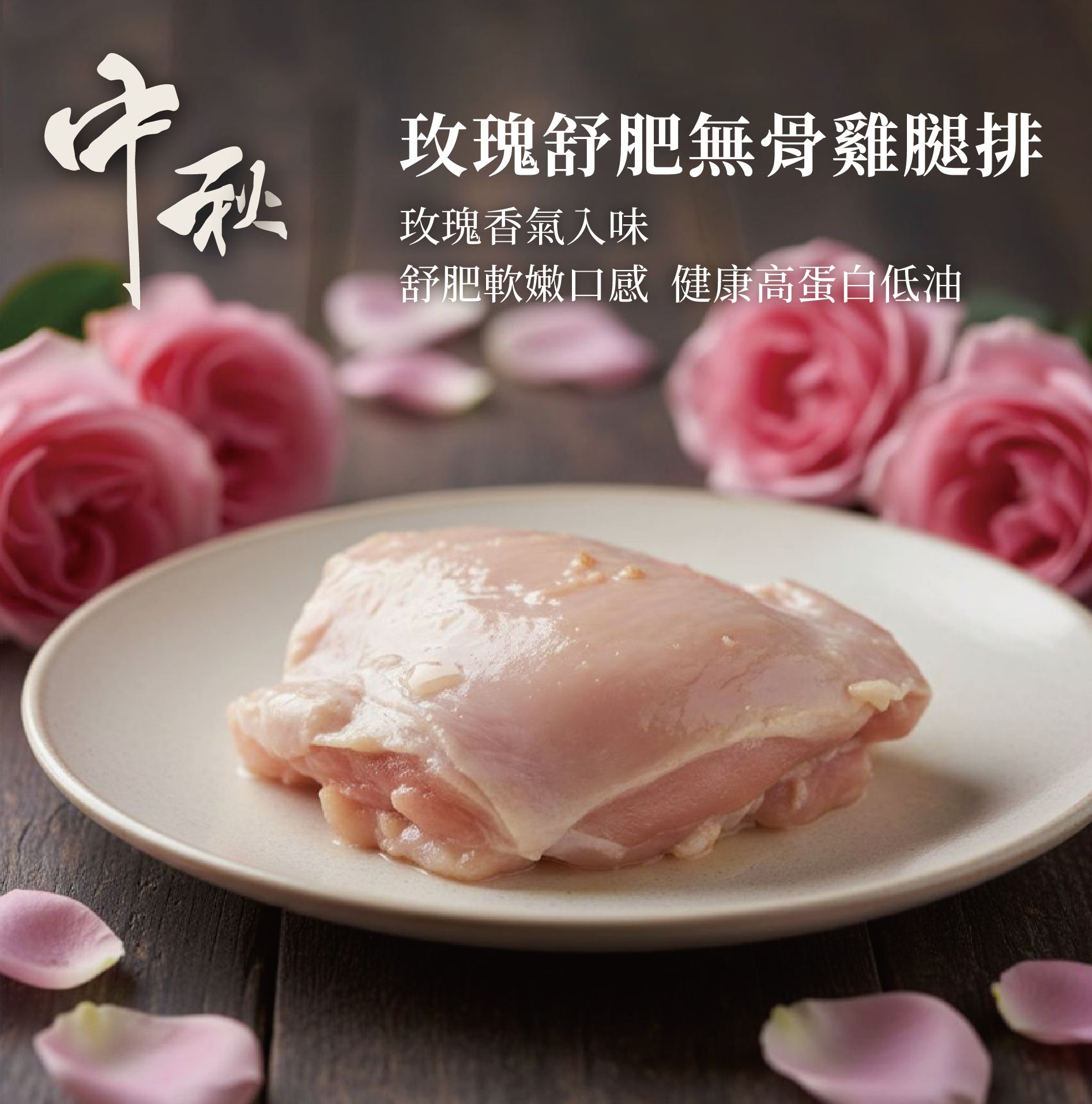# 玫瑰舒肥無骨雞腿排:玫瑰花香與雞腿肉的細緻融合